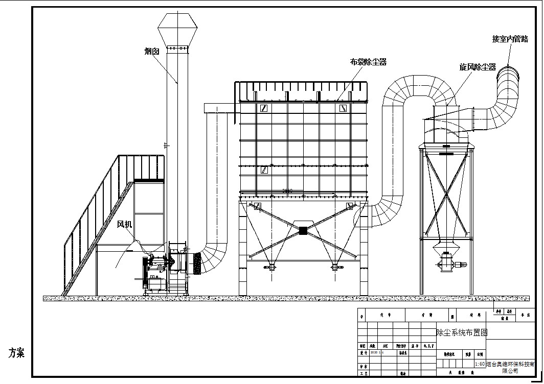 根據(jù)該公司粉塵排放特點(diǎn),以及對(duì)其可行性、經(jīng)濟(jì)方面進(jìn)行綜合比選后確定采用旋風(fēng)除塵器+布袋除塵器方式處理粉塵;